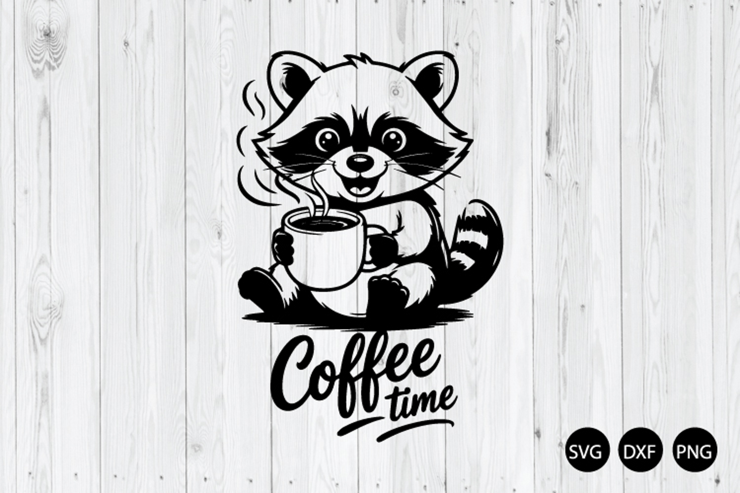 Coffee Time SVG, Funny Raccoon Coffee SVG, DXF, PNG Cut Files for Silhouette Cameo or Cricut
