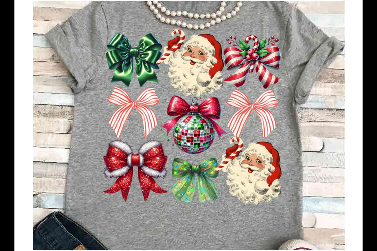 Santa png JPEG Sublimation bows Christmas group candy cane example image 1