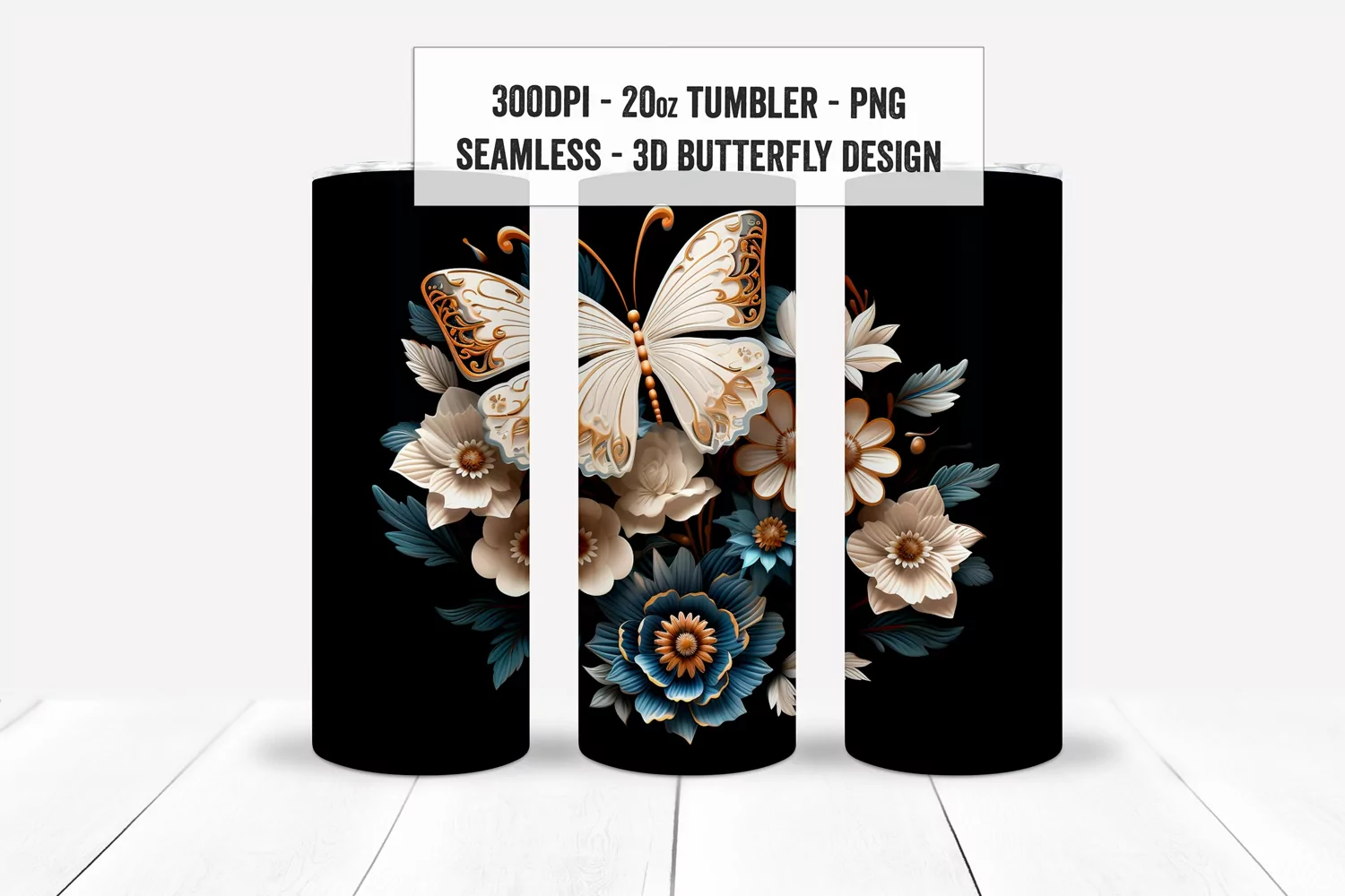 3D Butterfly Tumbler Sublimation Wrap, Seamless Floral Wraps example image 1