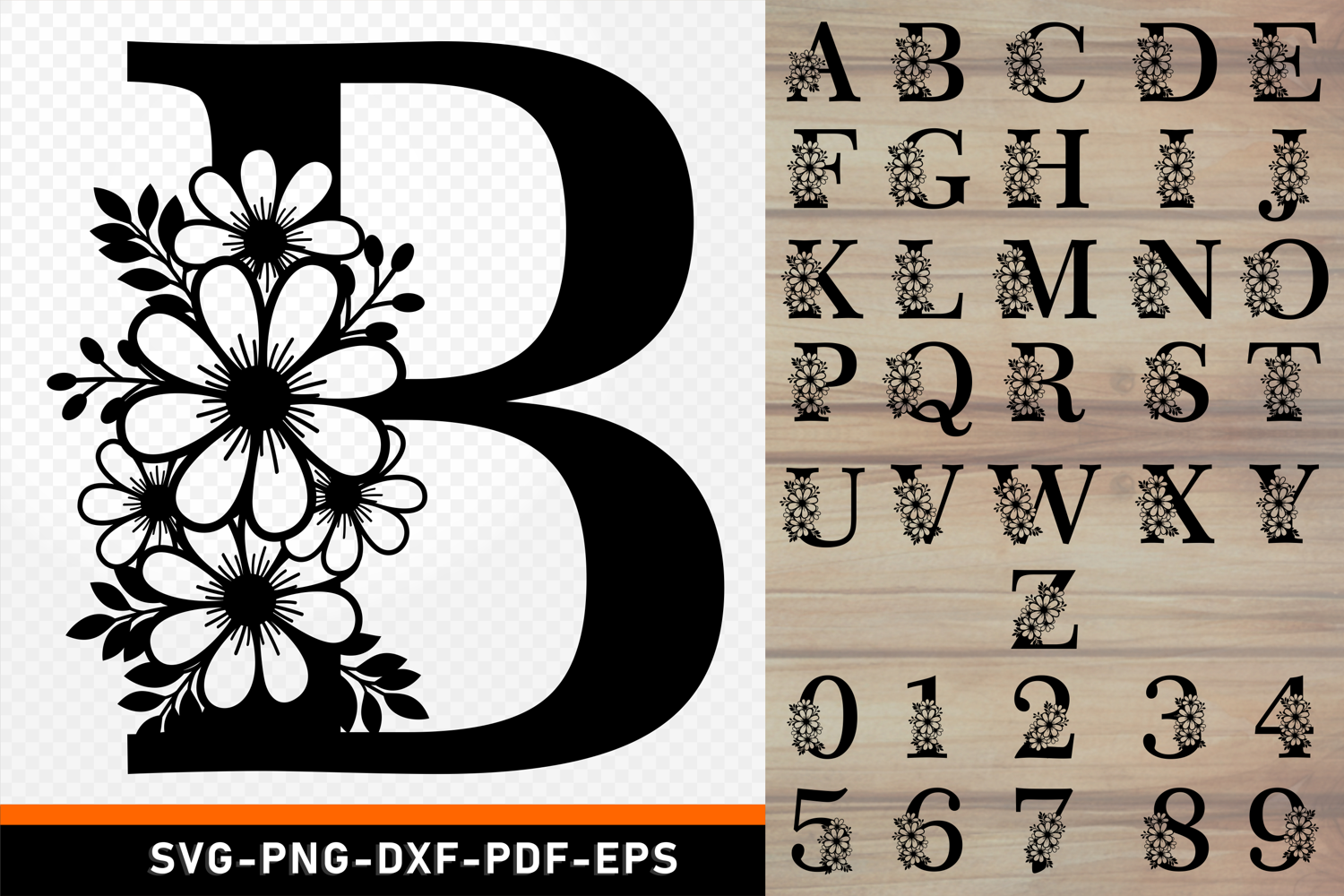 Floral Flowers Monogram Alphabet Letters SVG Laser Cut Files example image 1