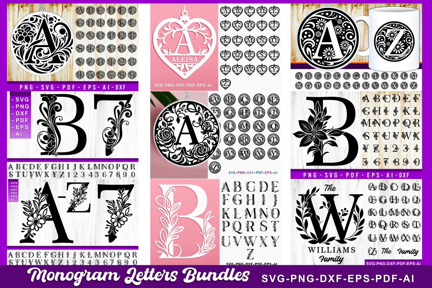Similar Design Products to Floral Monogram Letters SVG Bundle, Flower Monogram Font SVG