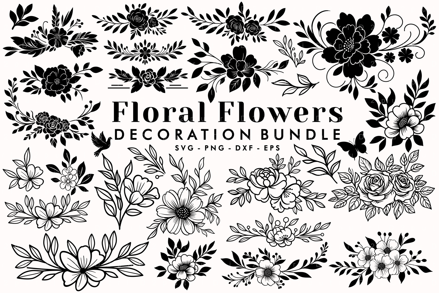 Floral Flowers Decorative SVG Bundle, Wedding Flower Clipart