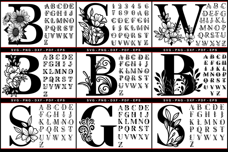 Monogram Svg Monogram Font Wedding Monogram Monogram Letters Svg Monogram Svg Bundle Family Monogram Laser Cut Files Flowers Monogram Floral Monogram Letter Flourish Fonts