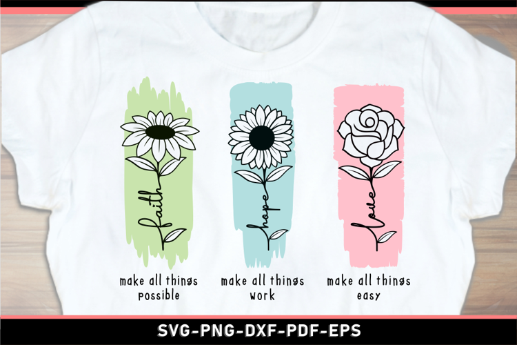 Faith hove love with daisy sunflower and rose T shirt Design