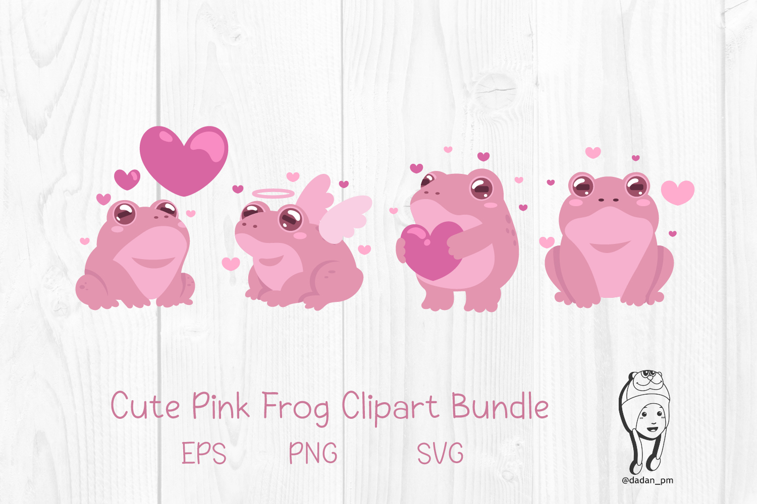 Cute Pink Frog Clipart Bundle Valentine Love Frog SVG PNG