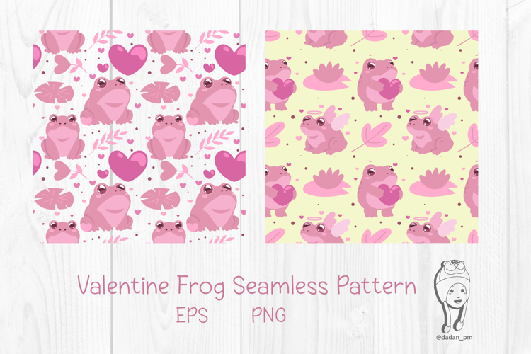 Valentine Frog Seamless Pattern Cute Pink Frog Love Pattern example image 1