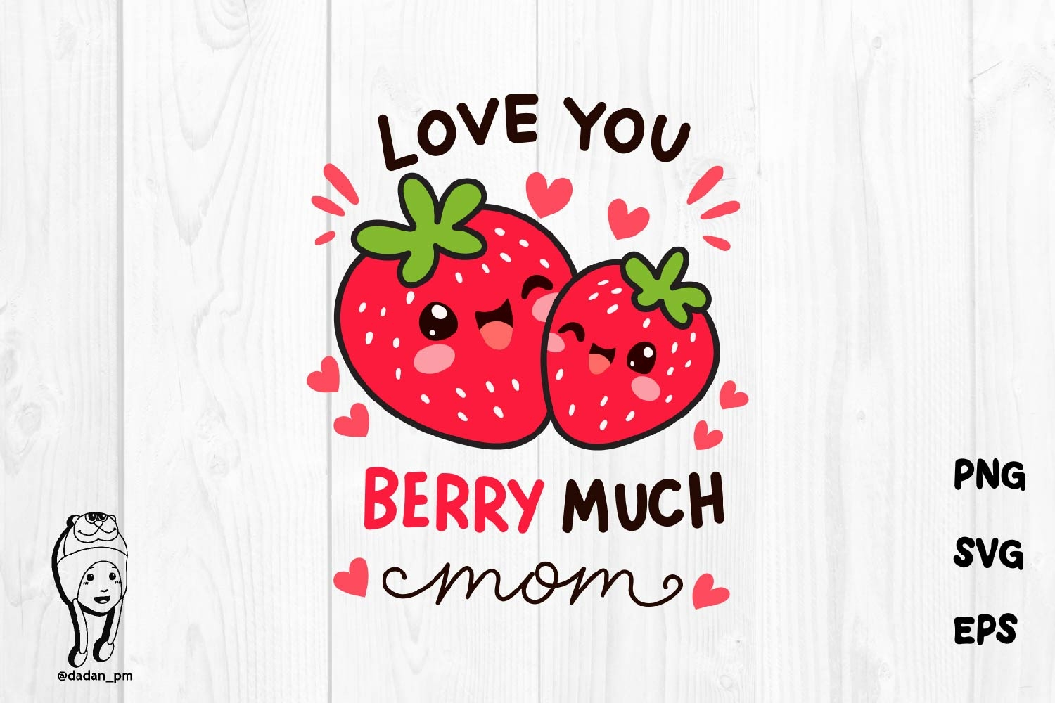 Berry Much Mom SVG Cute Kawaii Strawberry Mother’s Day example image 1