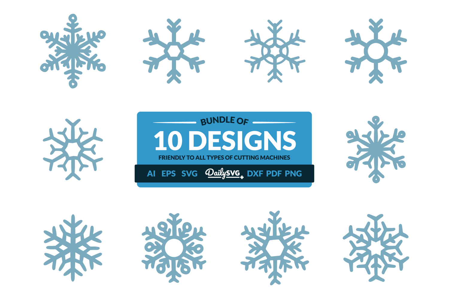 Handrawn Snowflake SVG Bundle of 10