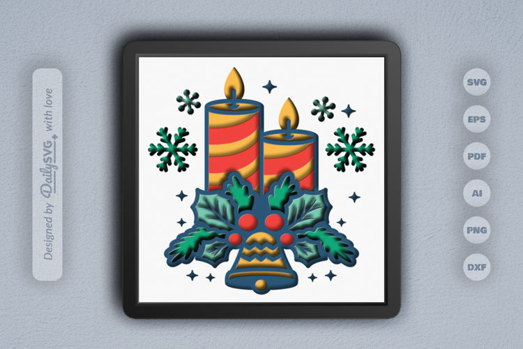 Christmas Candle Svg Holiday Candle Svg Svg For Christmas Crafts Svg Candle Ornament Svg For Holiday Crafts Layered Papercut Candle Festive Candle Svg Winter Candle Svg Candle Light Svg Svg For Seasonal Decor