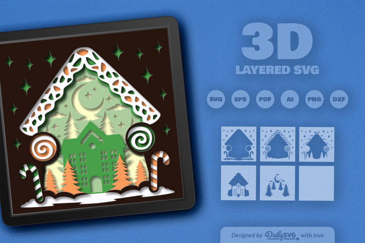 Winter Ginger Bread Mansion Layered Papercut example image 1