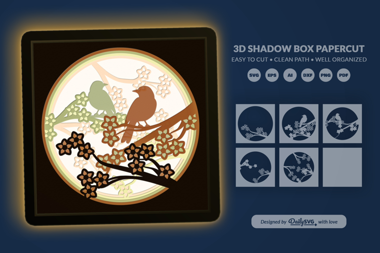 Bird On Branch Svg Layered Bird Svg 3d Bird Shadow Box Bird Papercut Svg Silhouette Bird Svg Cricut Bird Papercut Diy Bird Shadow Box Woodland Bird Svg Papercutting Bird Template Bird Silhouette Art Svg