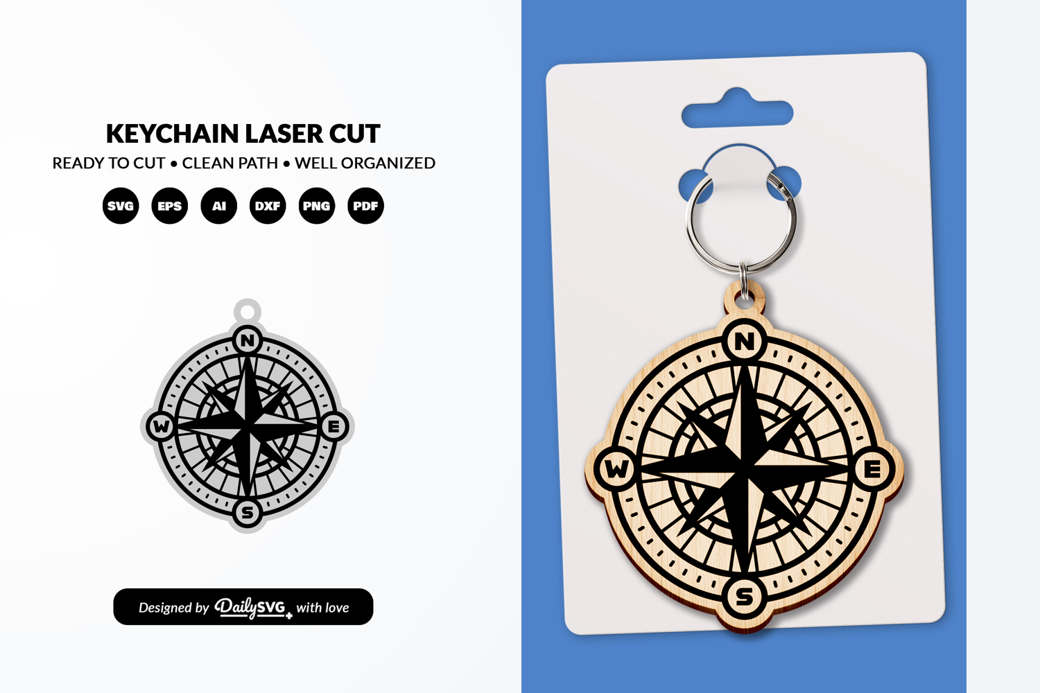 Adventure Compass Keychain Laser Cut SVG example image 1