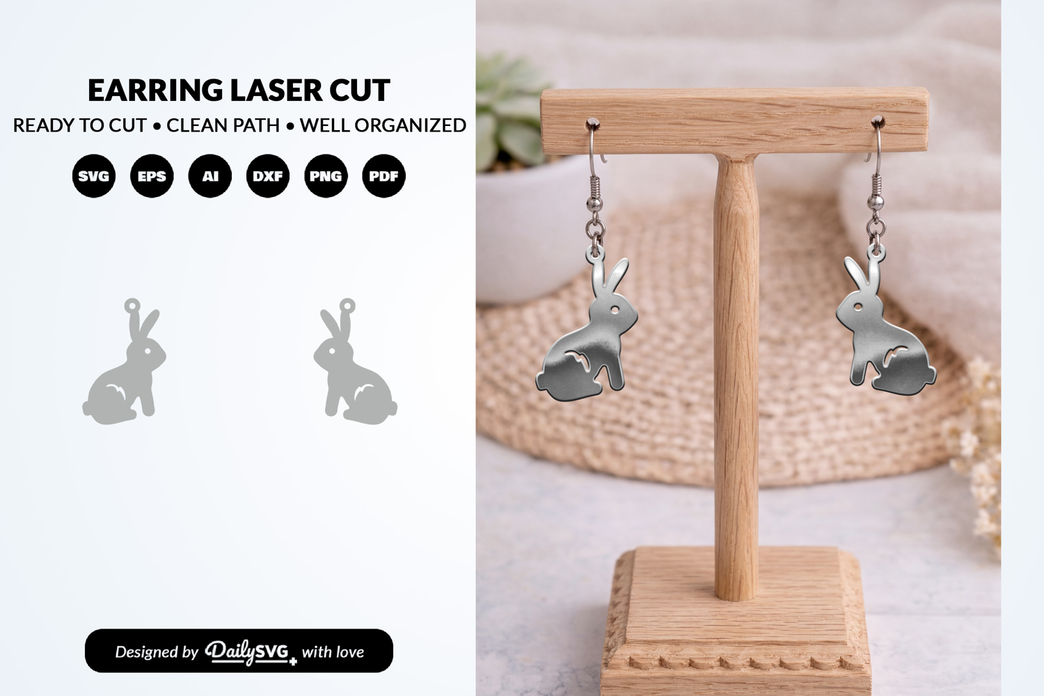 Create unique and artistic earrings with this easy to use SVG template, specially designed for laser cutting machines. Featuring a hand drawn animal style with soft, sketch-like details, this design is perfect for making creative jewelry pieces for fashion, gifts, or everyday wear. Optimized for clean cuts while preserving delicate line details.