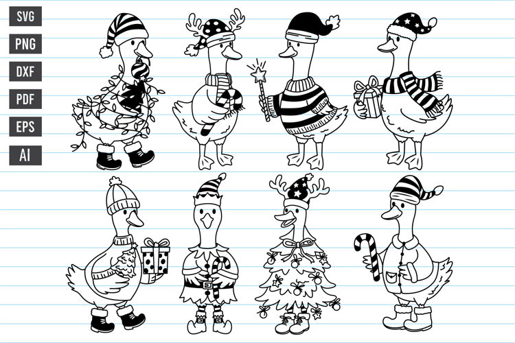 Similar Design Products to Christmas Goose SVG Merry Christmas Goose Cartoon Line Art