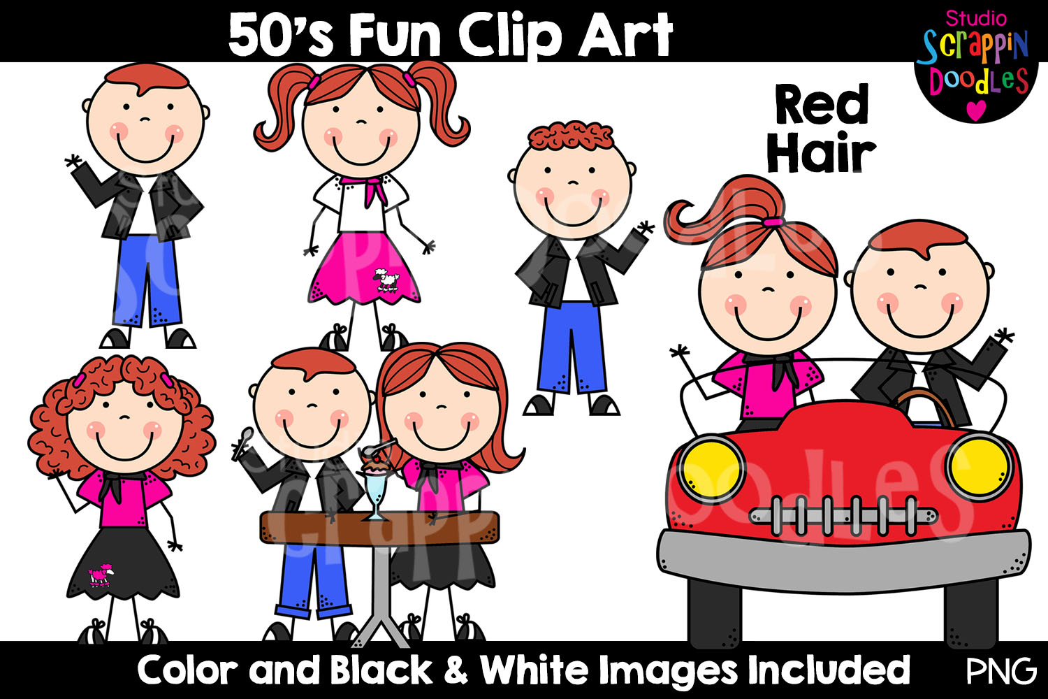 Our Fifties Fun Kids Clip Art includes super cute Fifties themed graphics in various hair and skin tones.
