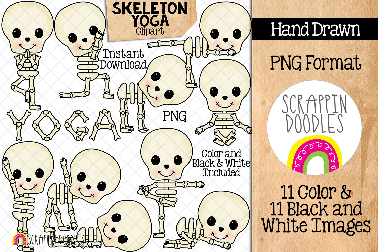 Skeleton Yoga Clip Art - Halloween Stretching Clipart - Doing Yoga Poses - Exercising - Fitness - Downward Dog - CUse PNG Sublimation