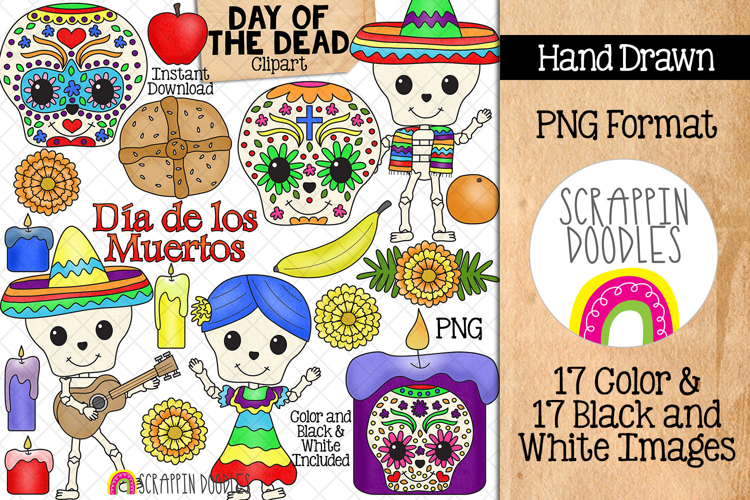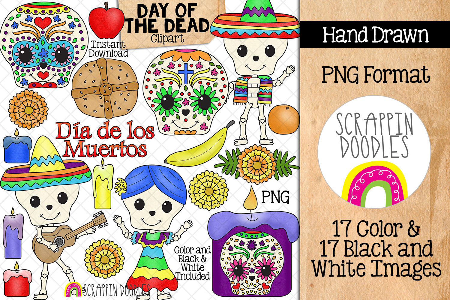 Day of the Dead Clip Art - Día de los Muertos - Skeletons - Fruit - Marigolds - Candles - Celebration - Aztec - Mexico - PNG Sublimation
