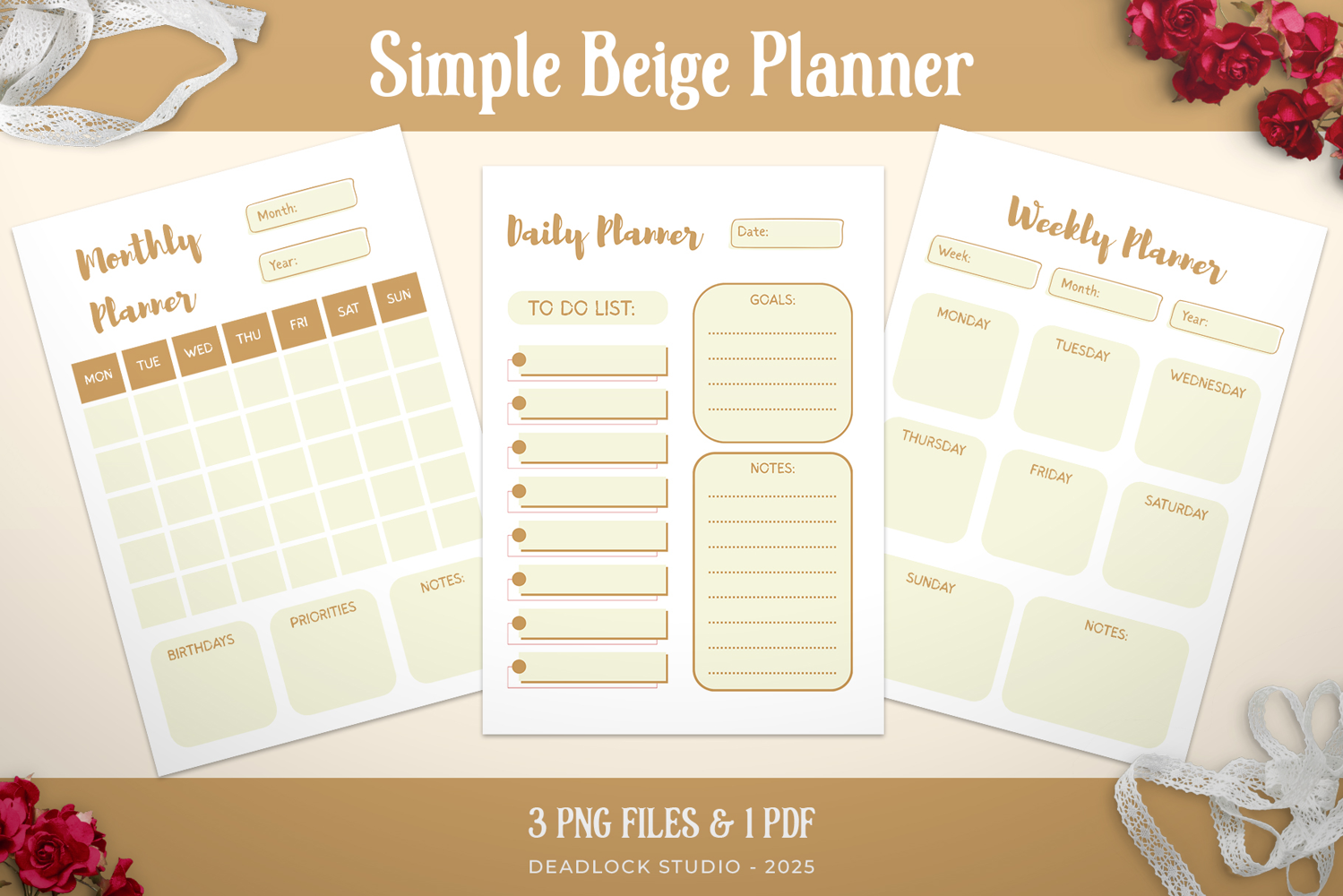 Simple Beige Planner | Daily, Weekly & Monthly Planner