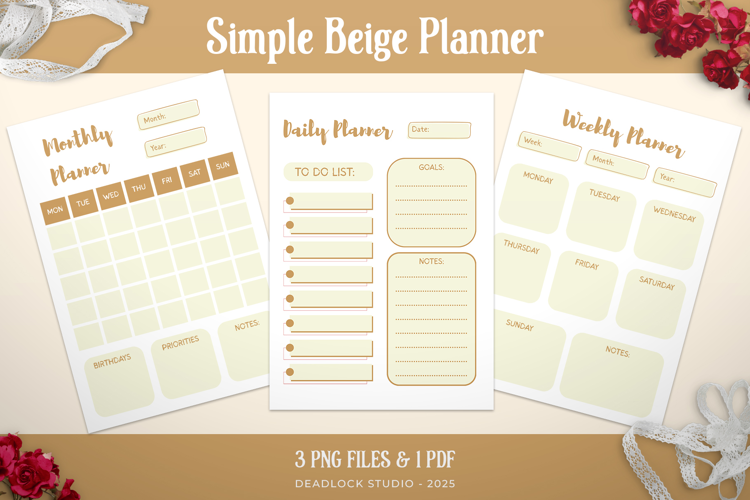 Similar Design Products to Simple Beige Planner | Daily, Weekly & Monthly Planner