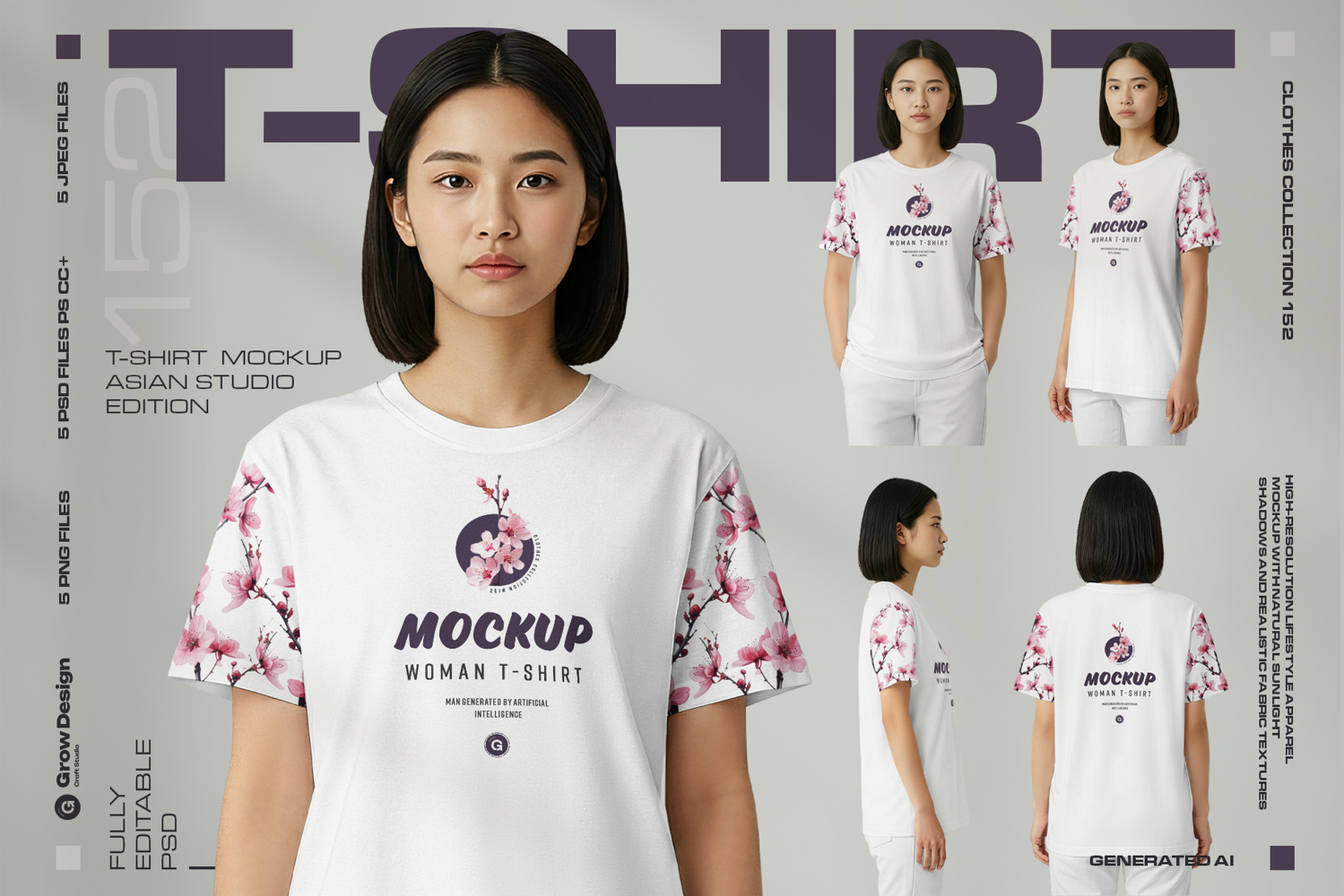 Mockup Woman T-Shirt Set – Asian Model Studio Edition. Generated Ai