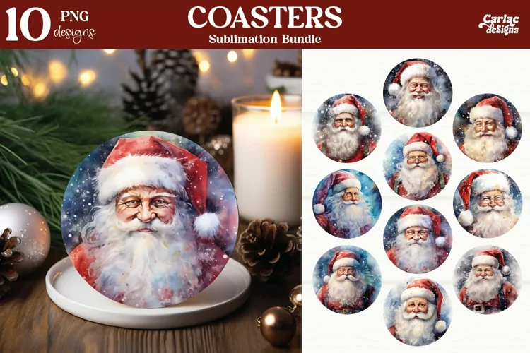 Christmas Coaster Bundle Santa Claus Coaster Round Coaster Sublimation Sublimation Coaster Bundle Watercolor Coasters Round Coasters Png Winter Coaster Bundle Christmas Round Coaster Sublimation Bundle