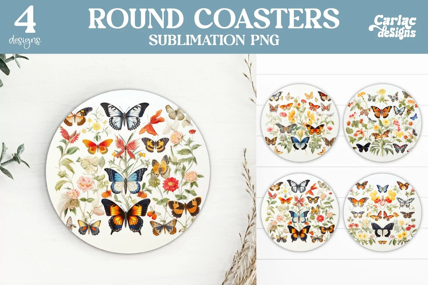 Sublimation Designs Sublimation Coaster Coaster Sublimation Drink Coaster Sublimation Colorful Coasters Round Coaster Sublimation Coaster Sublimation Png Vintage Round Coaster Butterflies Coaster Sublimation Table Protector