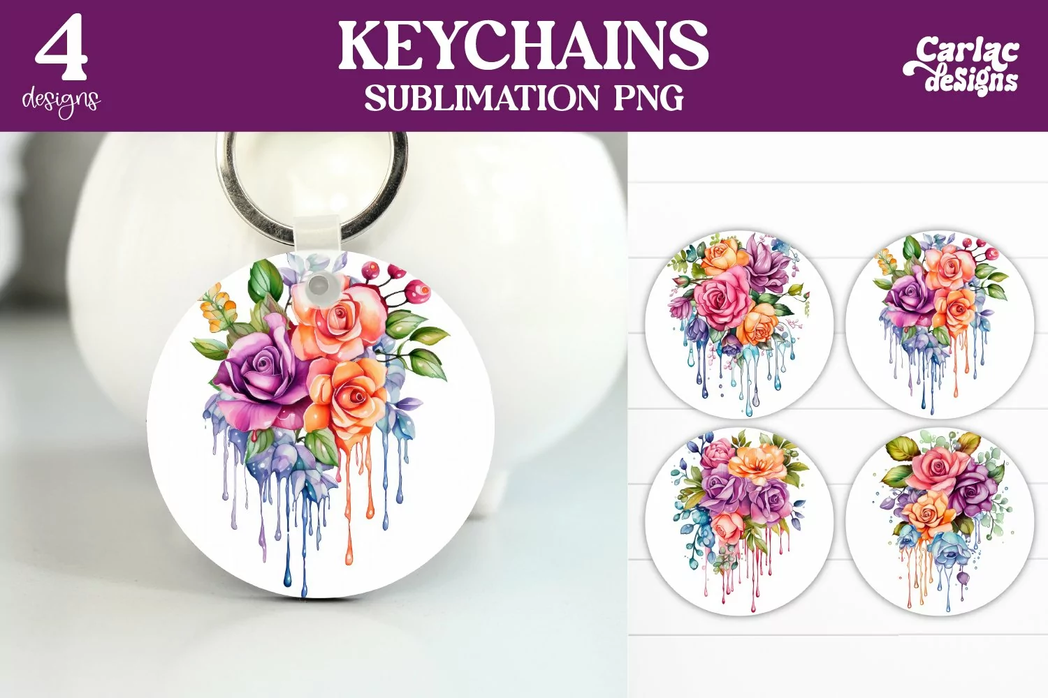 Flowers Keyring Sublimation, Round Keyring Design example image 1