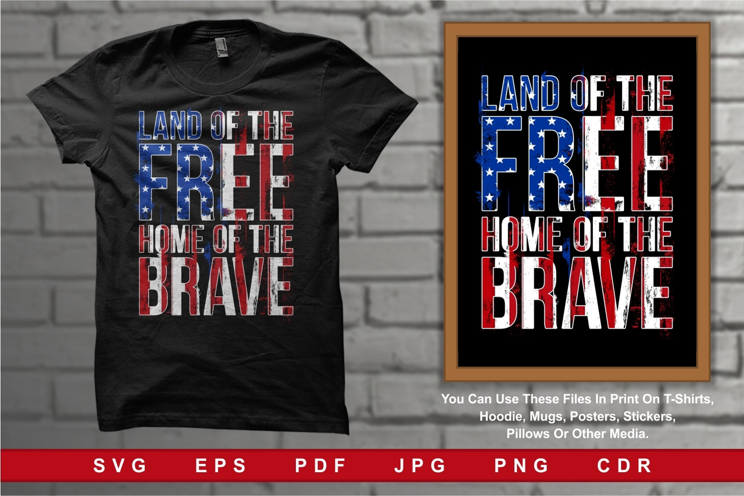 Typography Distressed Land of the Free Home of the Brave Patriotic