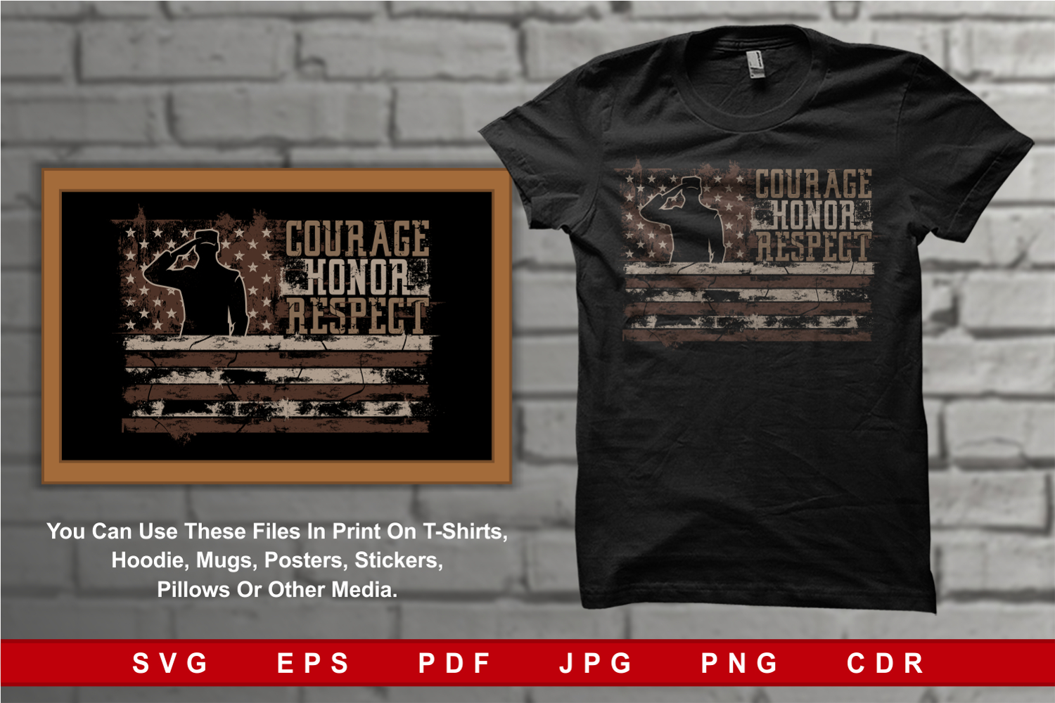 Courage Honor Respect Veteran Brown Desert Camouflage Salute example image 1