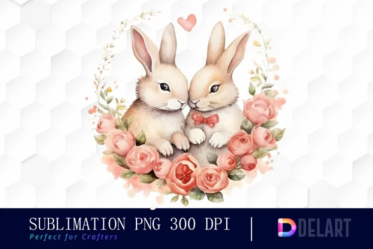 Similar Design Products to Watercolor Valentine Rabbit Clipart, Sublimation Art