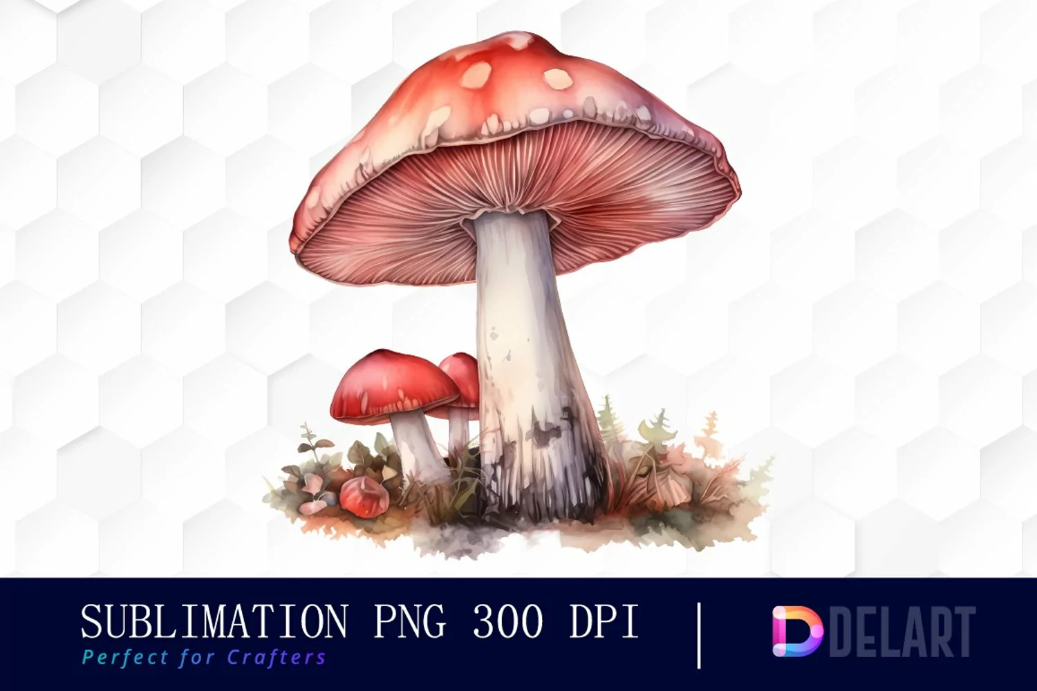Watercolor Red Mushroom Clipart, Sublimation Art example image 1