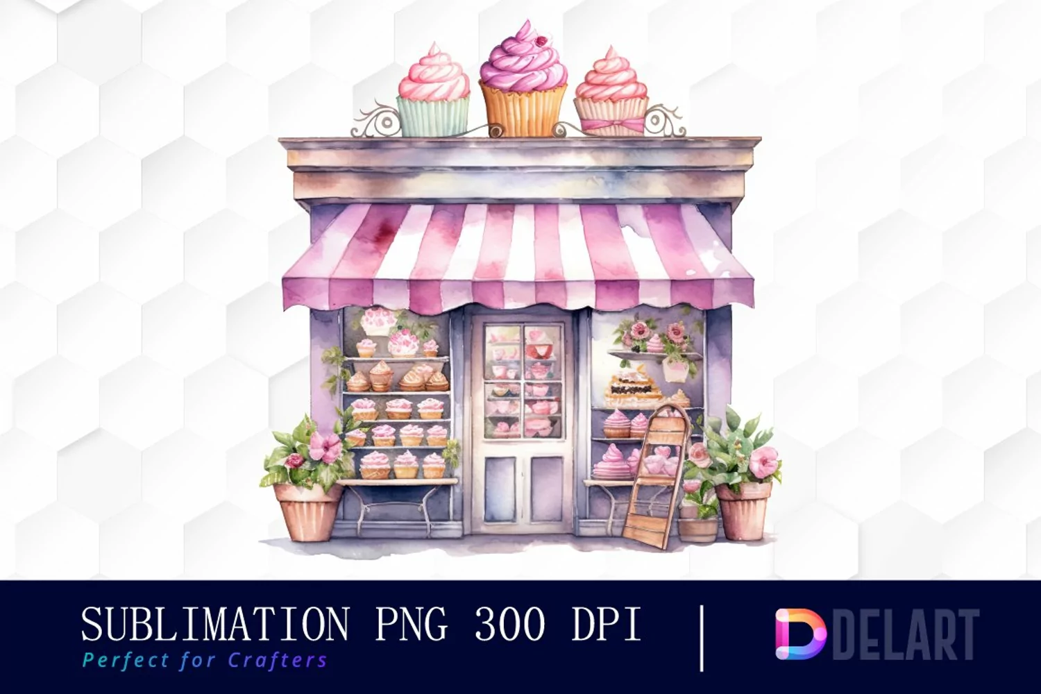 Watercolor Cupcake Store Sublimation Art