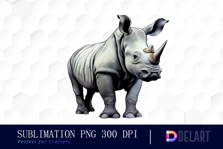 Rhinoceros Watercolor Sublimation Art example image 1