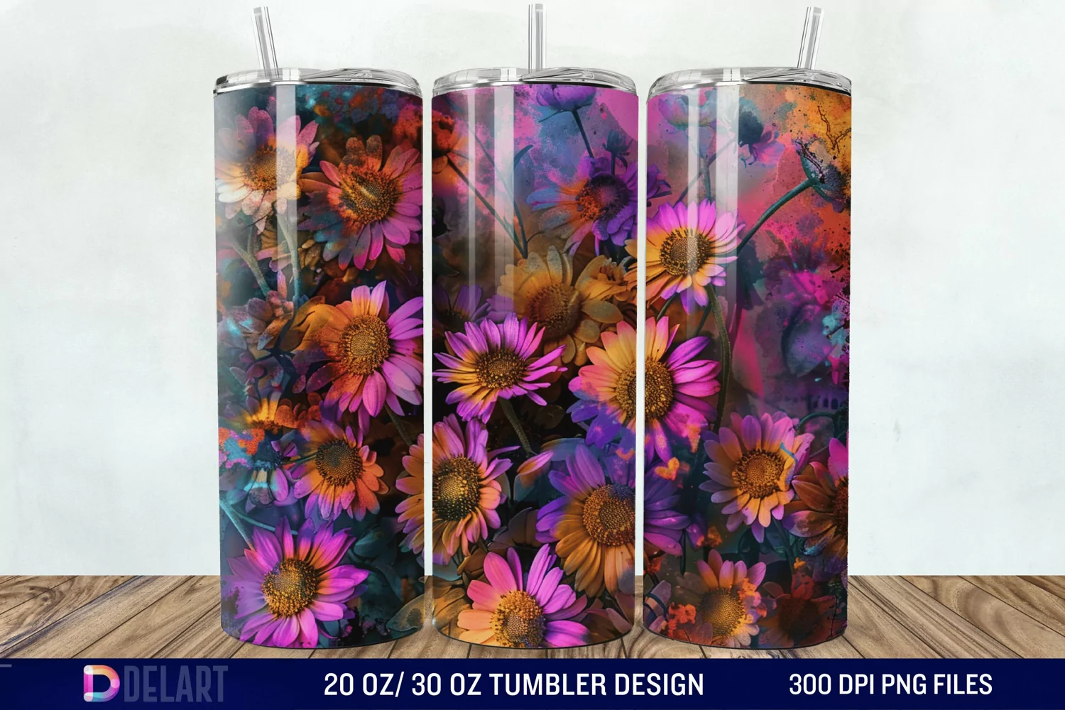 3D Burned Aster Flowers Tumbler Wrap example image 1