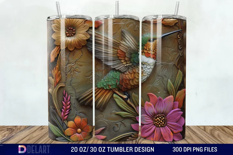 Hummingbird Design Tooled Leather Hummingbird 3d Leather Tumbler Wrap Custom Tumbler Decor 20oz Tumbler Accessory 30oz Cup Holder Leather Drinkware Wrap Hand-tooled Cup Wrap Beverage Holder Accessory Unique Drinkware Gift