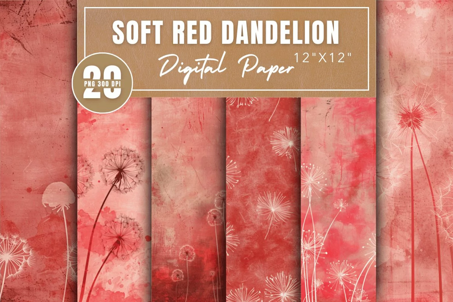 Red Dandelion Digital Paper Set Floral Digital Papers Red Dandelion Soft Red Digital Paper Pack Dandelion Pattern Digital Papers Red Floral Digital Paper Collection Digital Paper Pack With Dandelions Dandelion Themed Digital Papers Red And Soft Dandelion Paper Set Soft Red Dandelion Digital Paper Bundle Soft Red Dandelion Design Bundle