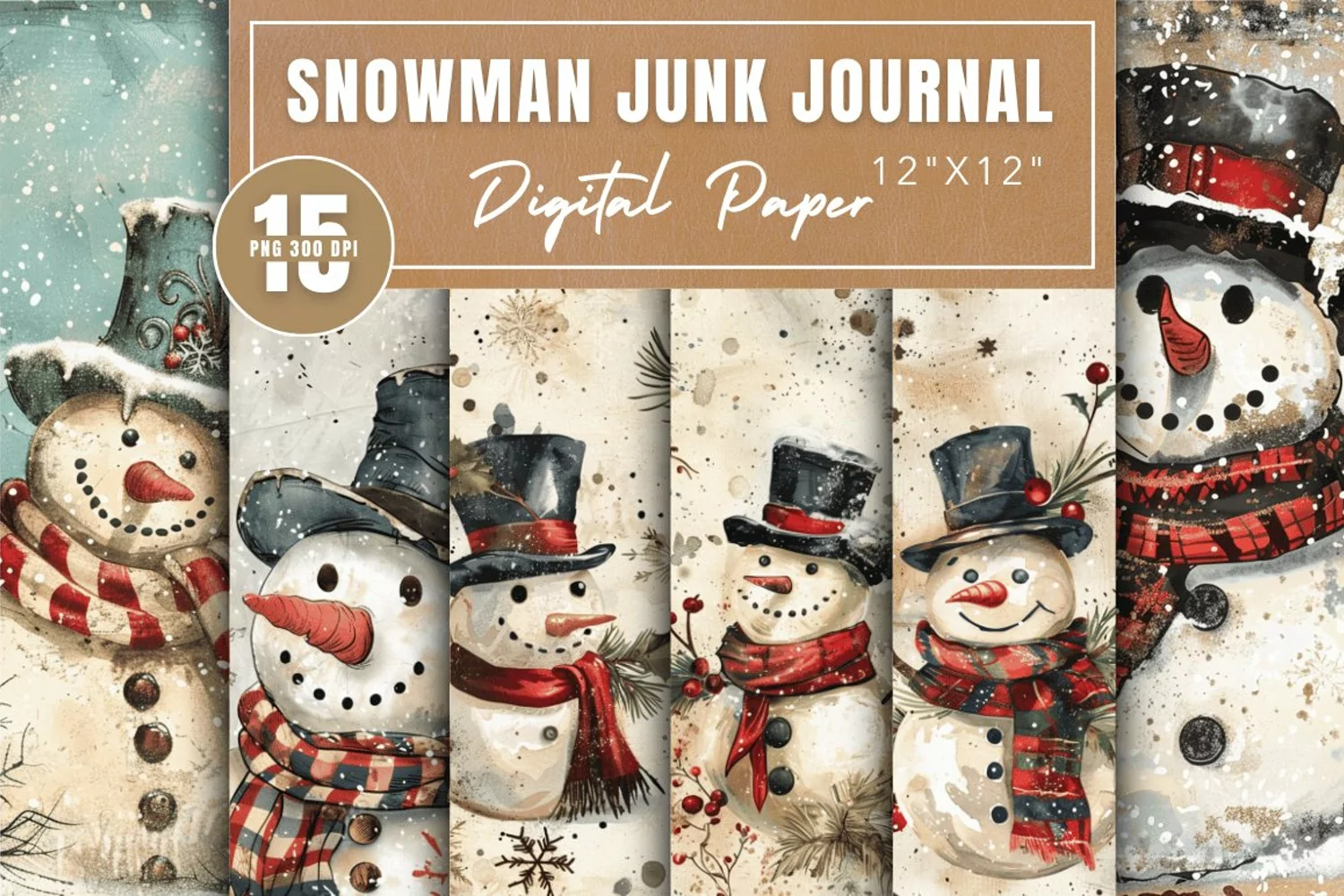 Similar Design Products to Snowman Junk Journal Digital Paper Bundle
