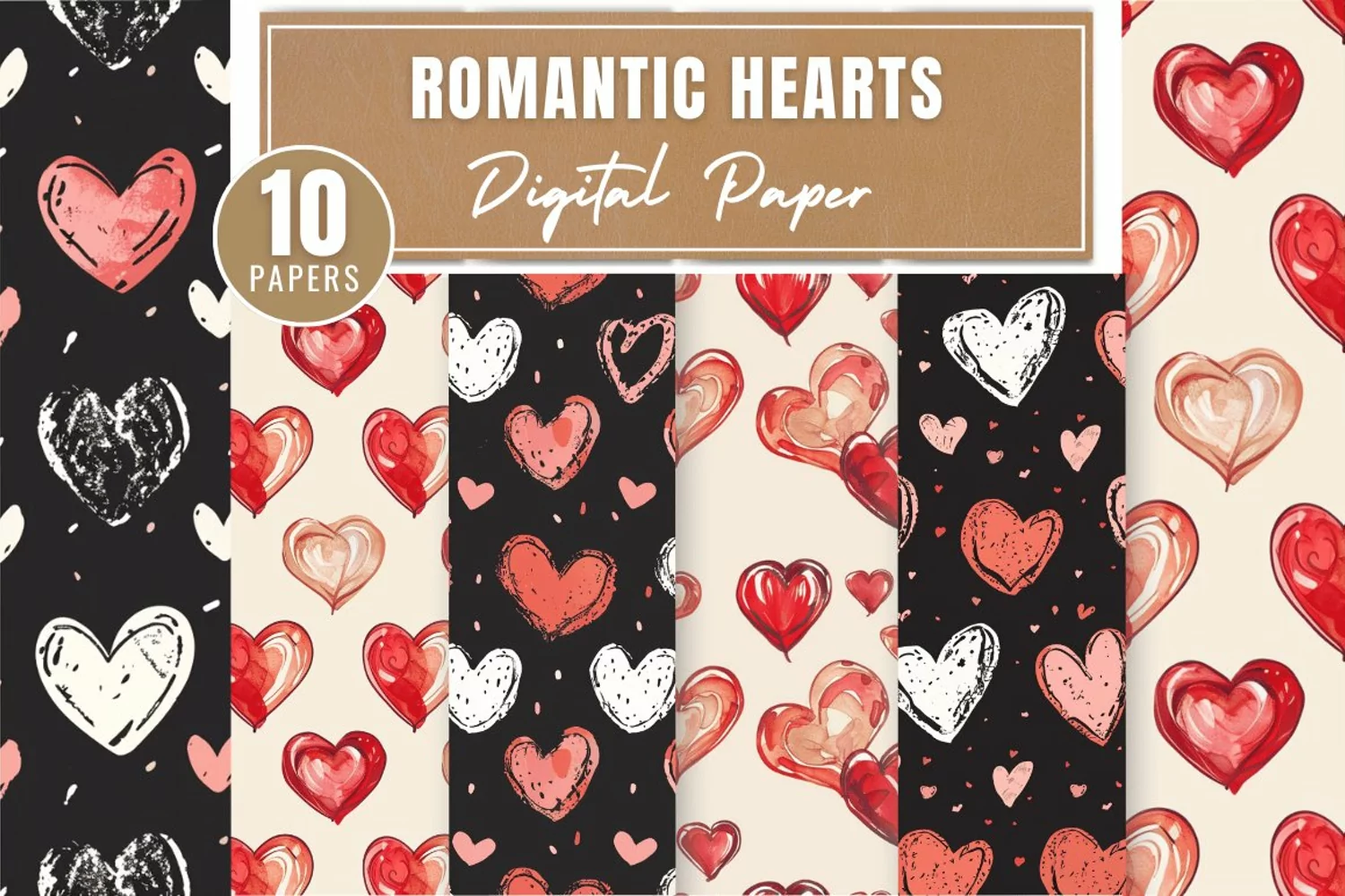 Romantic Hearts Digital Paper Bundle