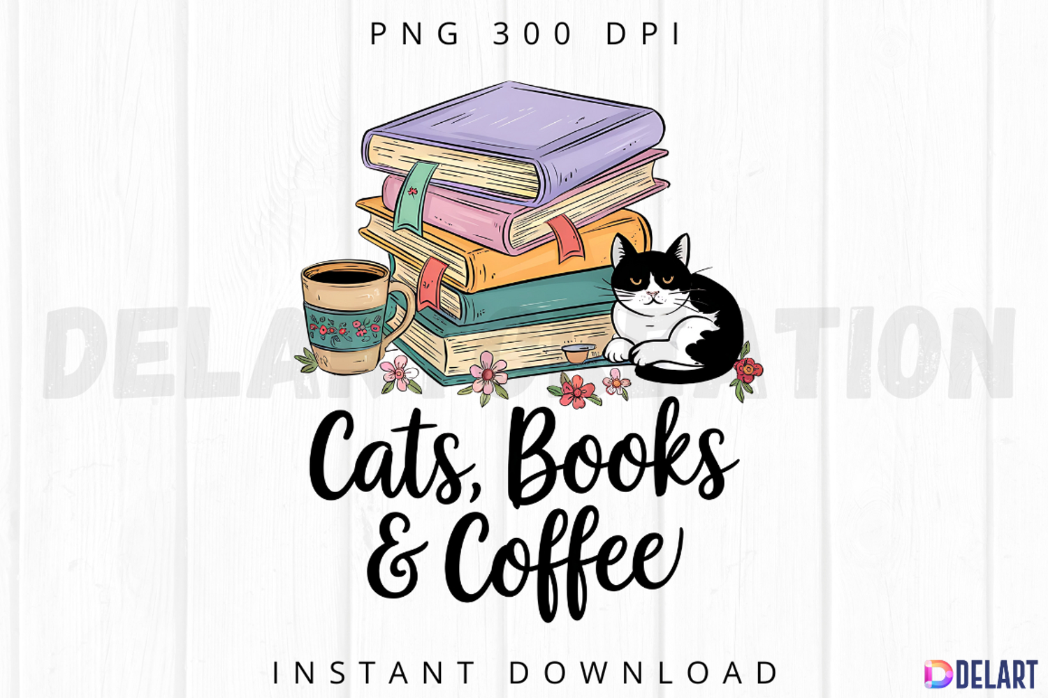 Cat Lover Sublimation Png Bookish Cat Png Cats Books & Coffee Sublimation Png Cute Cats And Books Png Coffee Lover Cat Clipart Cats And Coffee Sublimation Design Cozy Cat With Books Png Coffee And Cats Digital Download Books And Coffee Lover Clipart Vintage Cat Book Design Png