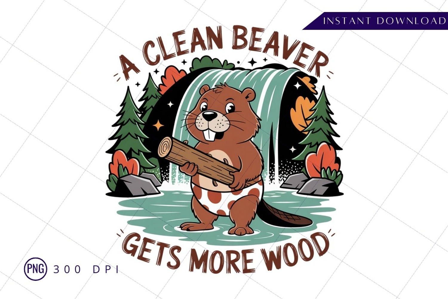 Cartoon Beaver With Log Sublimation PNG example image 1