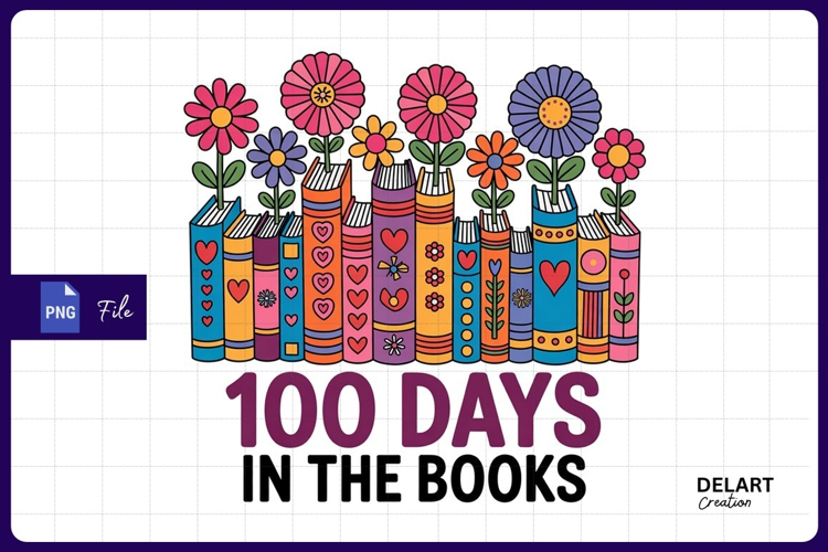 Happy Celebration Flowers School Education Reading Books 100 Days Sublimation Png In The Books