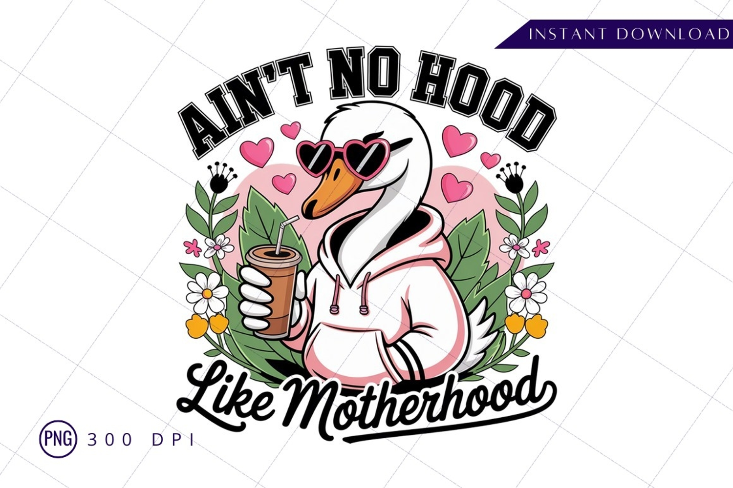 Cartoon Coffee Cute Hearts Flowers Sunglasses Swan Motherhood Hoodie Aint No Hood
