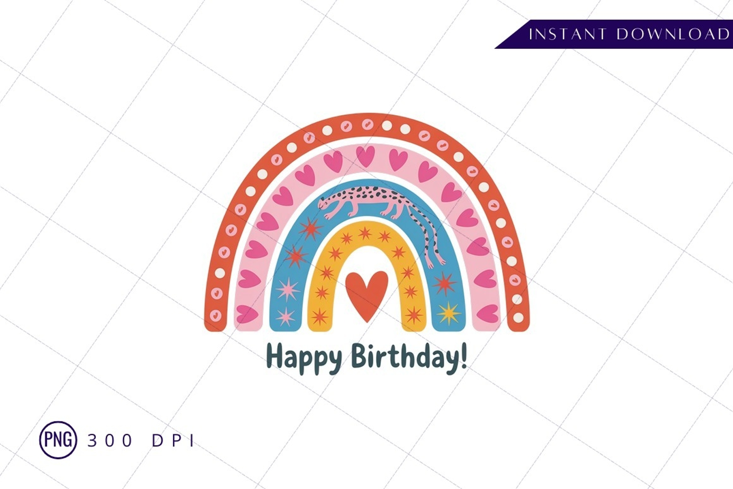 Colorful rainbow with hearts leopard sublimation PNG example image 1