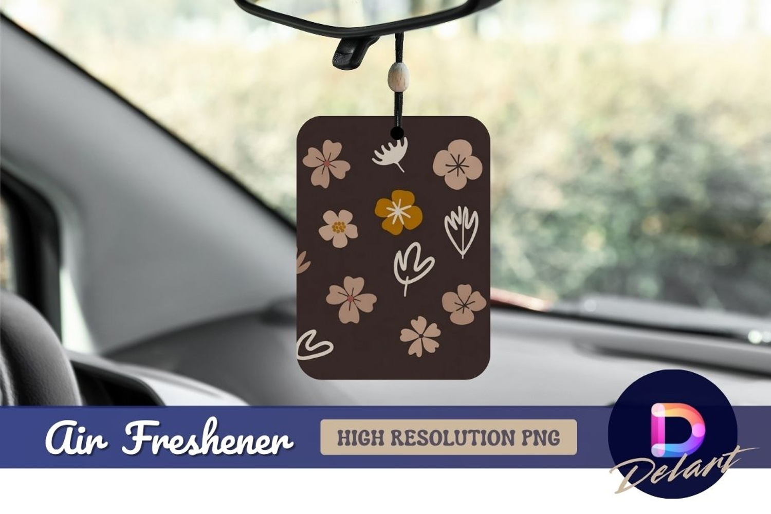 Minimalist floral pattern on dark brown Air Freshener PNG