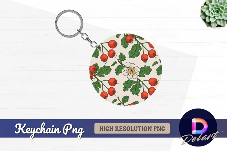 Hawthorn floral branch and berries Round Keychain PNG example image 1