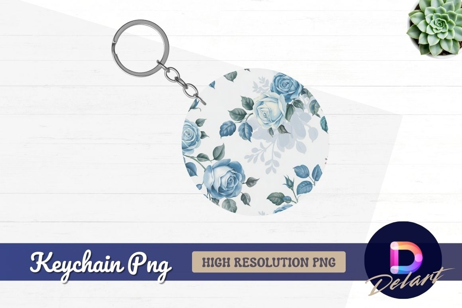 Round Floral Flower Botanical Bouquet Png Circle Floral Pattern Keychain Blue Roses