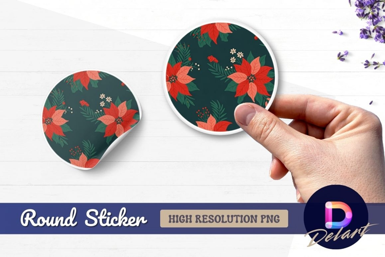 Poinsettia floral seamless pattern Round sticker png example image 1
