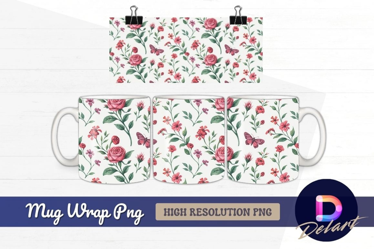 Floral watercolor pattern roses and butterflies Mug Wrap PNG example image 1