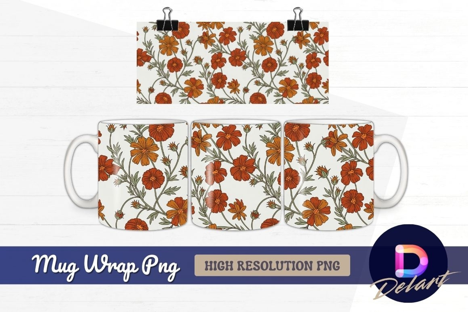 Floral pattern with orange and brown flowers Mug Wrap PNG example image 1