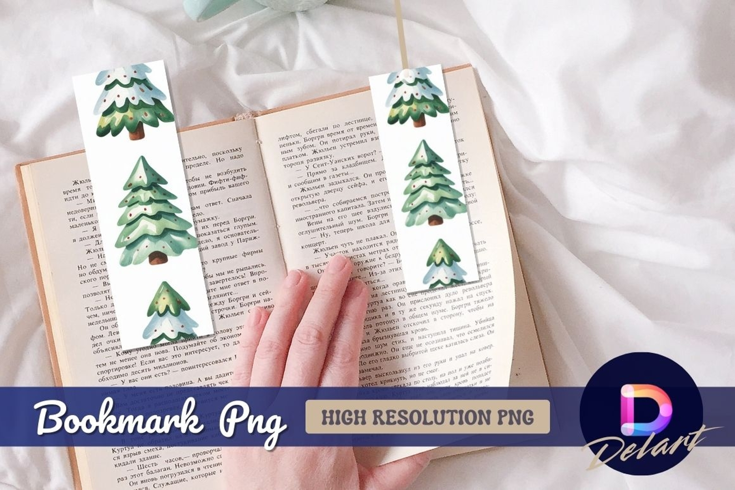 Watercolor christmas trees pattern bookmark png example image 1